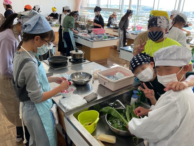 5年生の家庭科では、今日も収穫した野菜を材料に調理していました。