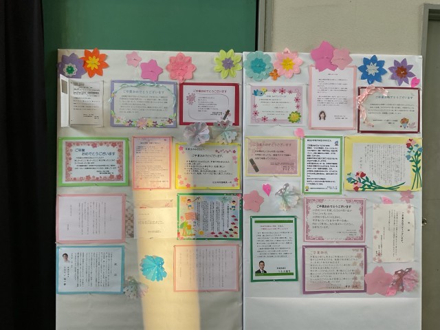 午後は、5年生と教職員で前日準備をしました。卒業を祝うメッセージもたくさんいただきました。