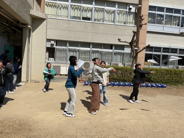 紙飛行機を飛ばしていたクラスもありました。