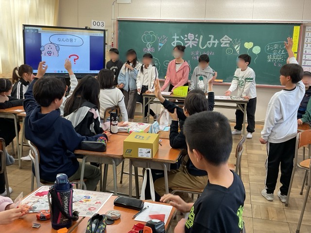 お楽しみ会の話し合いをしているクラスがありました。1年生では、6人の子たちが司会や書記をして、何遊びをするかをクラスで話し合いをしていました。