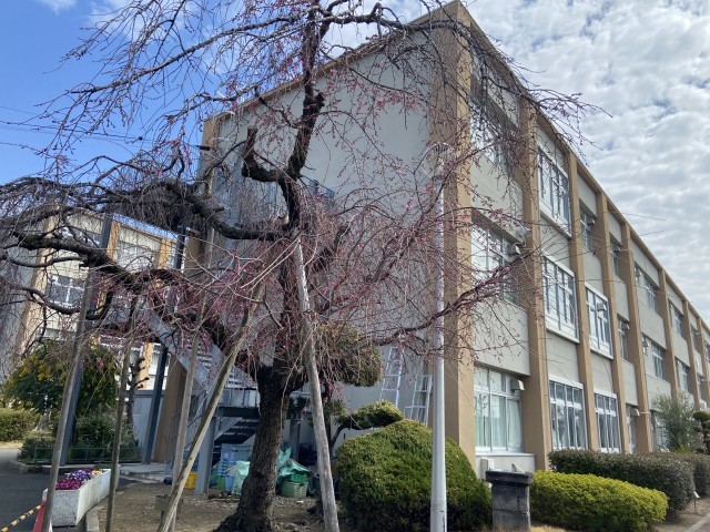 校門を入ったところにあるしだれ桜も、花が咲き始めました。