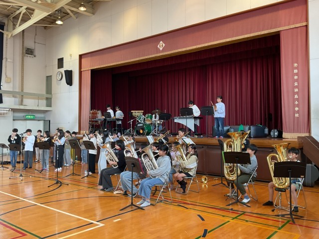 放課後、6年生もいっしょに金管クラブの子どもたちが練習していました。明日24日の修了式のあとは、先生バンドとコラボで演奏します。そして、25日は、アゼリアホールにおいて、子どもフェスチィバルに出演します。