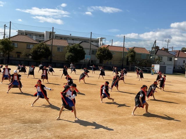 4年生は、本番の衣装を着て練習をしていました。はちまきを巻いて、背中に好きな漢字一文字を書いた法被が風になびいて、ずいぶんたくましさが出てきました。南中ソーランは、「どっこいしょ どっこいしょ ソーラン ソーラン」のフレーズが、36回も出てきます。やり切るならば、36回すべてが低い姿勢になれているのか。そして2曲目の「キャラクター」というポップな曲では、がらっと印象を変えて、笑顔になれているのか。完成まであと少しです。