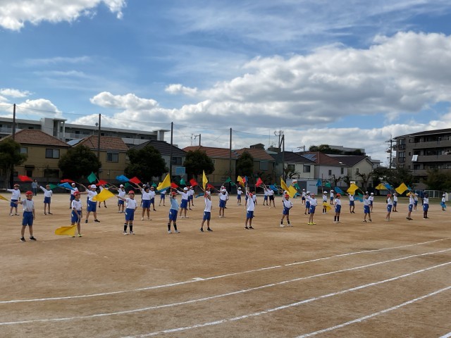 3年生の「旗をあげよう」も、4色の旗がきれいに風になびいて、運動場を駆け巡っていました。