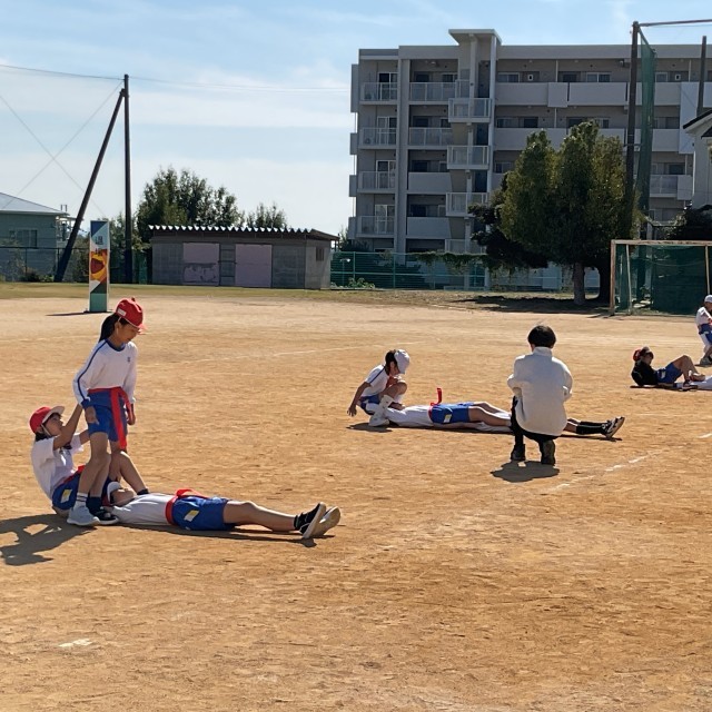 6時間目は、5.6年生のダンスと組体操の練習です。本番前の仕上げのつもりで気持ちを込めて行いました。だんだんそろってきました。退場の時の決めポーズは、それぞれのグループで工夫した楽しいポーズです。お楽しみに。