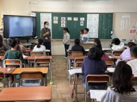 6時目は、4年生の体育でクラスリレーの学習をしていました。めあてはリードの仕方を話し合い、チームの記録を更新しよう。です。カーブを早く走るための、ぐるぐるコースを走ったり、チーム6人でリードしながらのバトンパスを確かめながら練習したあとは、作戦を立てて、いよいよリレーです。チームごとにタイムを計りました。今日、記録更新できたのは、1グループ。欠席者もあったこともあり、まだまだ伸びしろはあります。ワークシートに振り返りを書き、次の時間を楽しみにして今日の授業は終わりました。