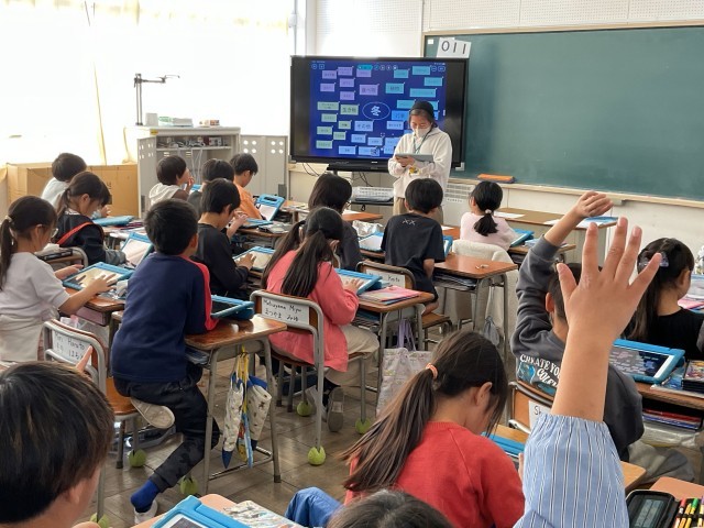 3年生の国語で、冬あつめをしていました。食べ物では、みかん・焼き芋・おでん・・・生き物では、トナカイ・キツネ・サンタさん(人間)・・・タブレットで、冬の言葉を提出箱に提出します。種類ごとに色分けすると、整理されますね。