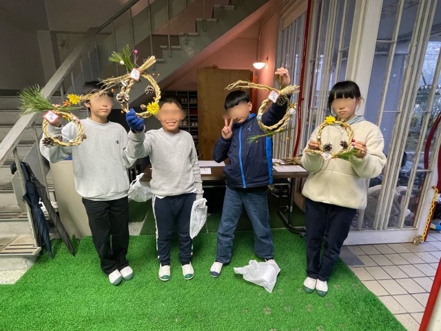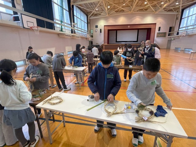 放課後は、キッズランドで、しめ縄づくりでした。毎年大人気で、準備の数があるので、4・5・6年生で事前申し込みをした子が参加できます。地域の方がたくさん準備や、飾りつけのお手伝いにきてくださいました。