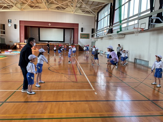 1年生が中庭で大縄跳びをしていました。タイミングを合わせて、跳んでいたら、体が温かくなってきました。寒い日こそ、外へ飛び出そう。