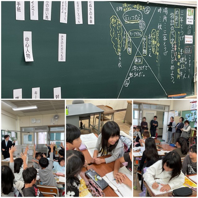 今日、3年2組で国語「三年とうげ」の研究授業がありました。
