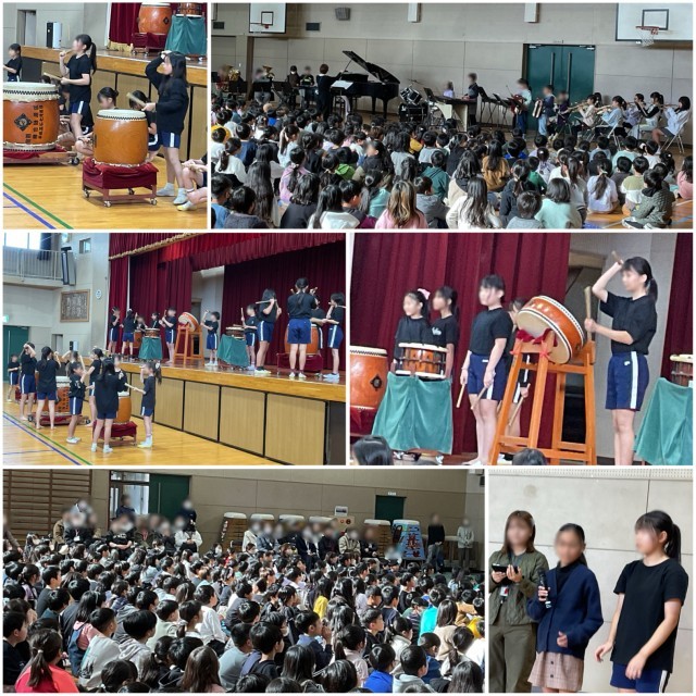 今日の5時間目に、音楽クラブと和太鼓クラブの演奏発表会がありました。これまで、この日のために、一生懸命練習してきました。音楽クラブは、いろいろな種類の楽器の音色を重ね、1つの曲に仕上げました。和太鼓クラブは、和太鼓の伝統の響きを守り、体全体でリズムを刻んでおり、迫力のある演奏でした。