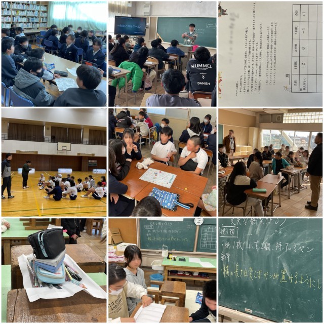 最初、校長先生や小中一貫の担当の先生からのお話があり、その後、授業(数学・英語・保健体育・技術から1つ)と中学1年生と交流をしました。中学校の先生は、活動が楽しい内容の授業を準備しており、子どもたちは緊張した中でも、楽しく授業を受けていました。交流会では、中学1年生が、タブレットやすごろくなどを使って、中学校についての問題を出したり答えたりしながら、楽しく交流をしました。クラブ見学では、最初生徒会のあいさつの後、それぞれのクラブの場所に行き、クラブを見学しました。