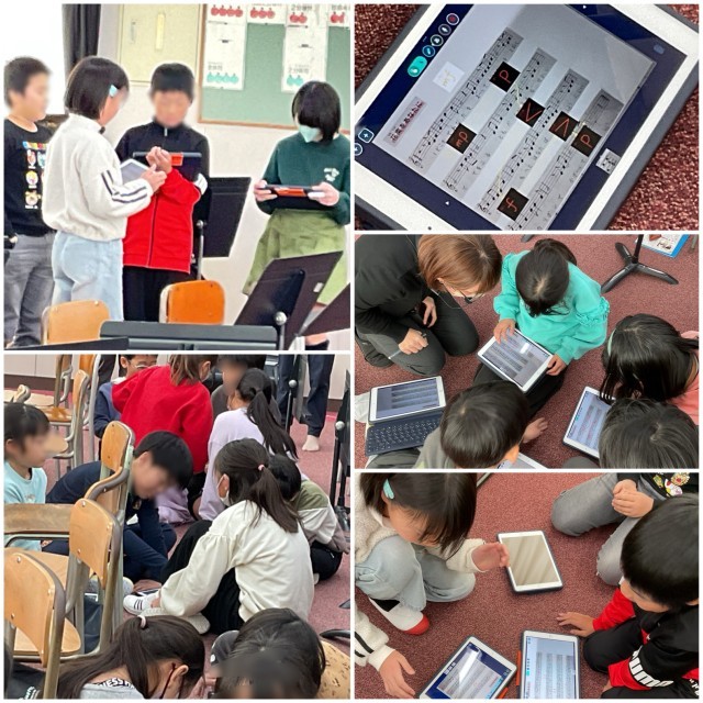 今日の3時間目に、音楽の研究授業(4年)がありました。いつもより先生が多いので少し緊張した様子でしたが、ボディでリズム打ちをしたり「笑顔がいいね」を歌ったりするなど、楽しい雰囲気で始まりました。