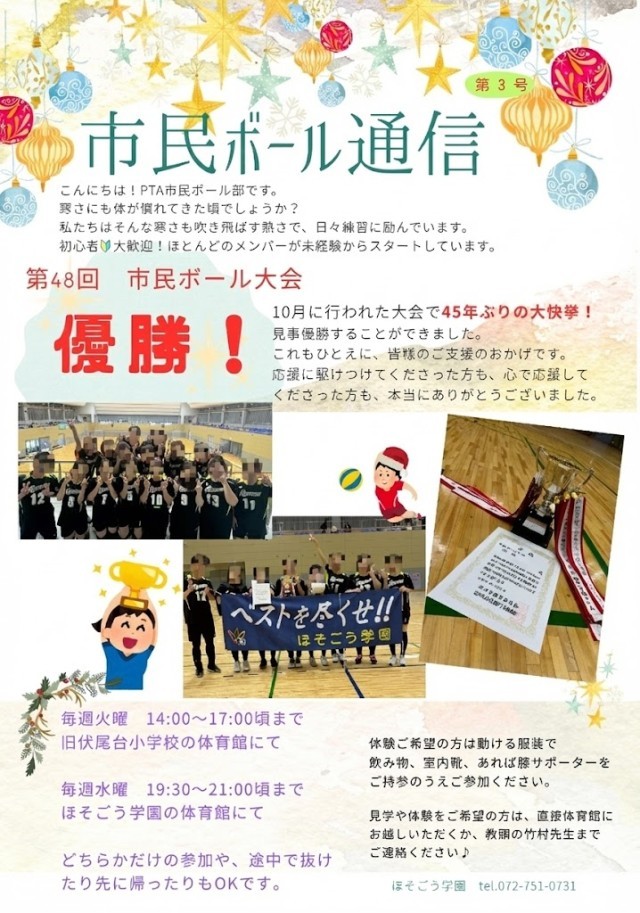 先日行われました、PTA市民ボール中央大会では、本校のAチームが見事優勝しました。
