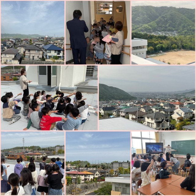 3年生が、社会科の学習で特別に屋上へ上がりました。