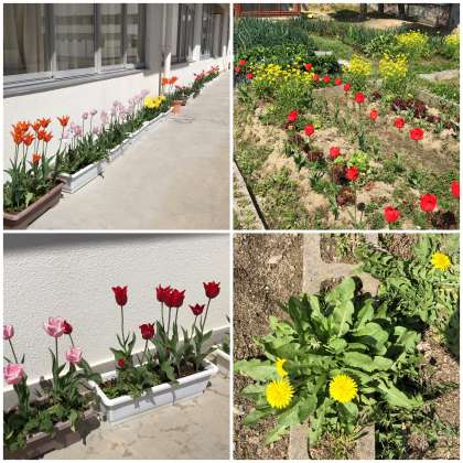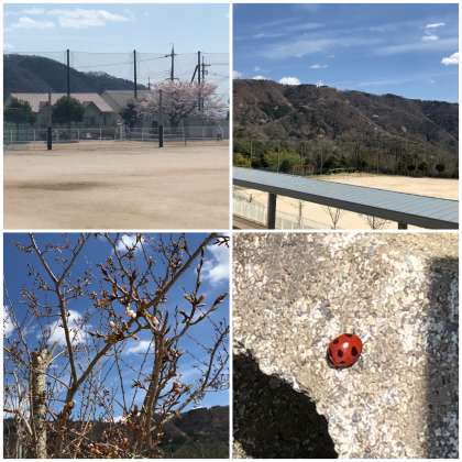 今日は昼過ぎに、校内の桜などを見て回りました。チューリップも鮮やかな色どりで楽しませてくれています。校内の桜も、満開に近いものもあれば、ほとんど開花していないものもあります。種類によって違いがあるのでしょうね。テントウムシも見つけました。