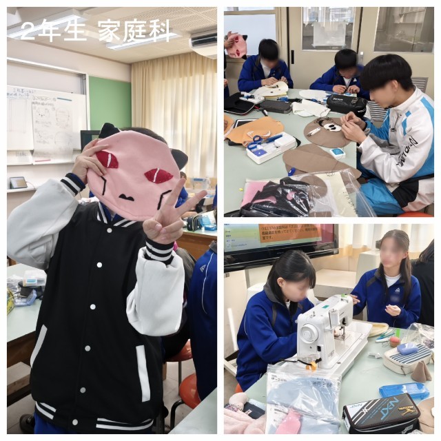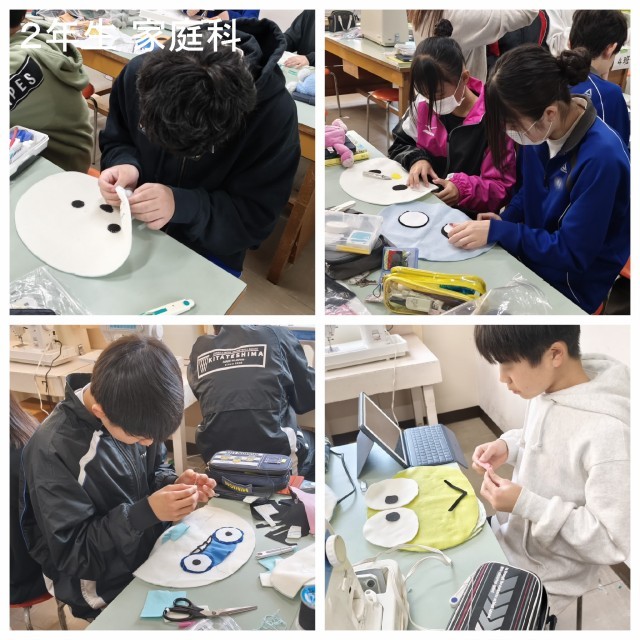 2年生の家庭科では、オリジナル座布団「ほっこりTheぶ~とん」づくりがピークをむかえています。どれもが個性的で力作揃いですね。