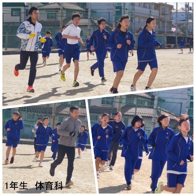 グランドでは、寒波の襲来をものともせず、1年生が持久走に取り組んでいました。体力自慢の教員も続々と参入(乱入?)し、生徒に負けじと真剣に走りこんでいました。