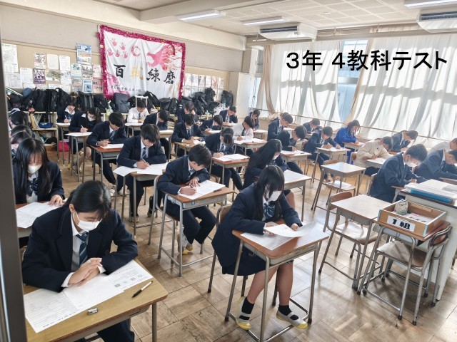 今日は3年生4教科テスト。神妙な顔つきでテスト用紙に向かい合っていました。また、本日から3年生の三者懇談が始まります。3年生にとってこの時期は卒業後の進路選択を控えた節目であり、将来に関わる選択を支えるための大切な懇談となります。ご多用とは存じますが、よろしくお願いいたします。