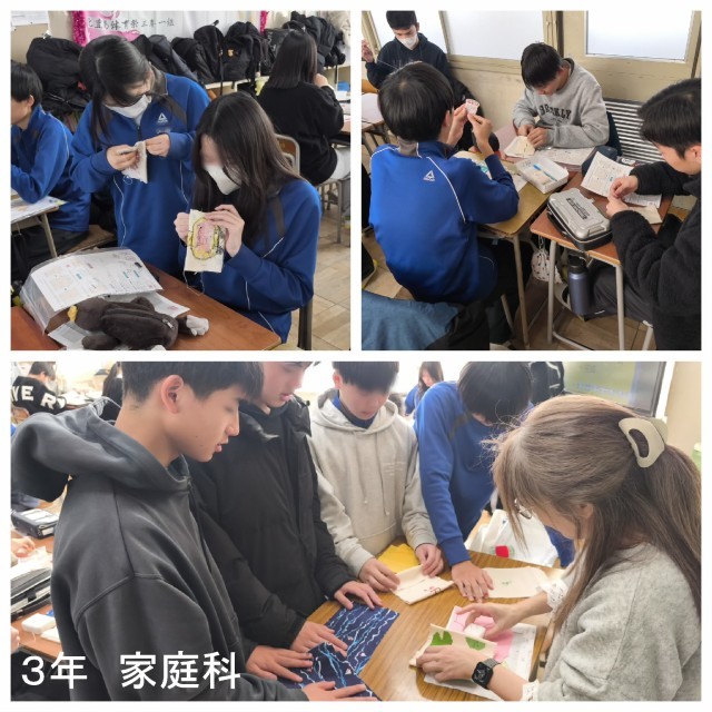 2年生の家庭科では、オリジナル座布団「ほっこりTheぶ~とん」づくりがピークをむかえています。どれもが個性的で力作揃いですね。