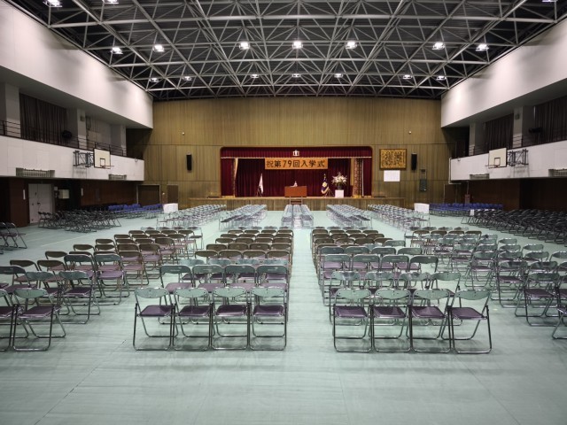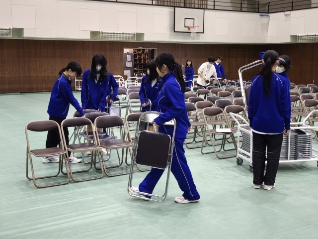 今日は新2年生の2クラス(旧1-1、1-2)が登校し、明日の入学式に向けての前日準備を行いました。会場の設営だけでなく、会場周り、新入生の教室の清掃なども最後まで丁寧に、一生懸命に取り組んでくれました。在校生のみんな、新入生のためにありがとうございます。