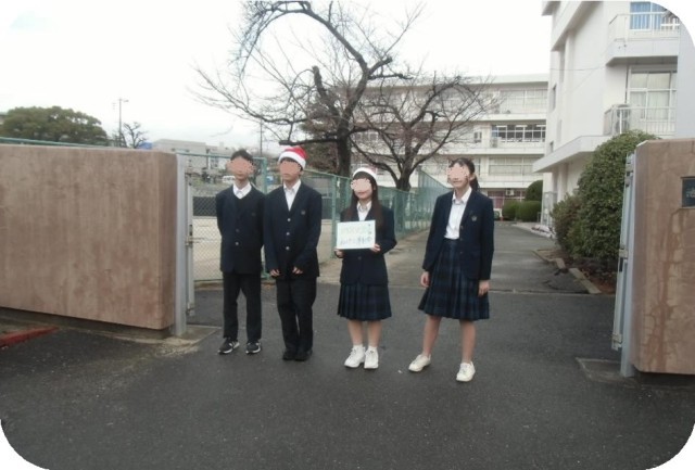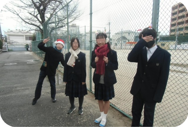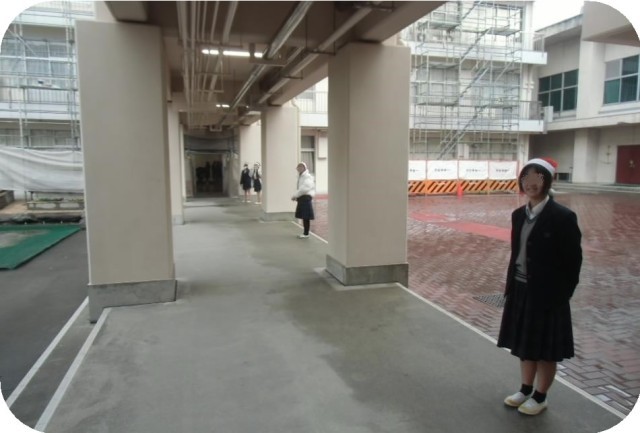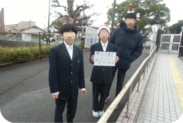 本日の朝、校門や校舎の階段、廊下で、クリスマスの飾りをつけた生徒が、「メリークリスマス!」と朝のあいさつをしてくれていました。生徒会のあいさつ運動の最終日のイベントでしたが、朝から楽しくなりました。