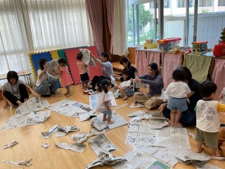 7月10日と11日は、新聞遊びを楽しみました。