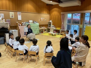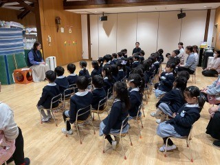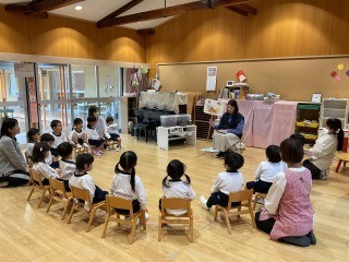 次に、3歳児には「毎日幼稚園に来てほしい」ことや、「幼稚園でいっぱい遊んでほしい」ことを話しました。幼稚園での生活を楽しみにしている様子が感じられ、うれしい気持ちになりました。