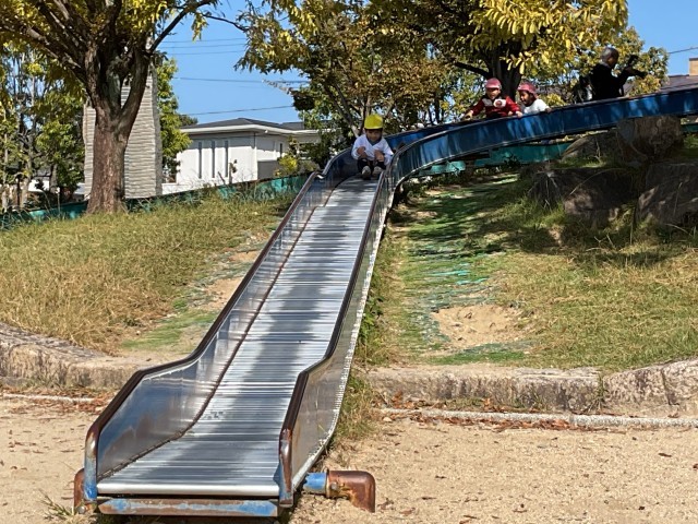 10月30日(木)に4歳児が幼稚園バスに乗って、豊中市にある野畑南公園に行きました。
