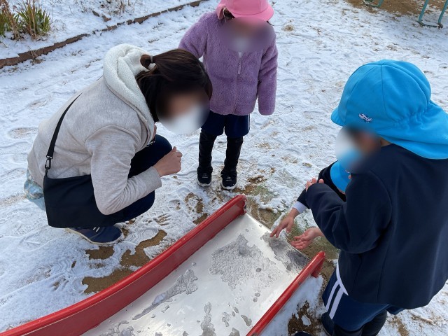 「手がつめたい~」と言いながらも、再び雪を集め、この辺りではなかなか積もらない雪に触れていっぱい遊んでいました。
